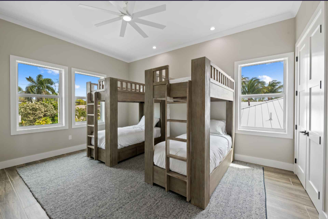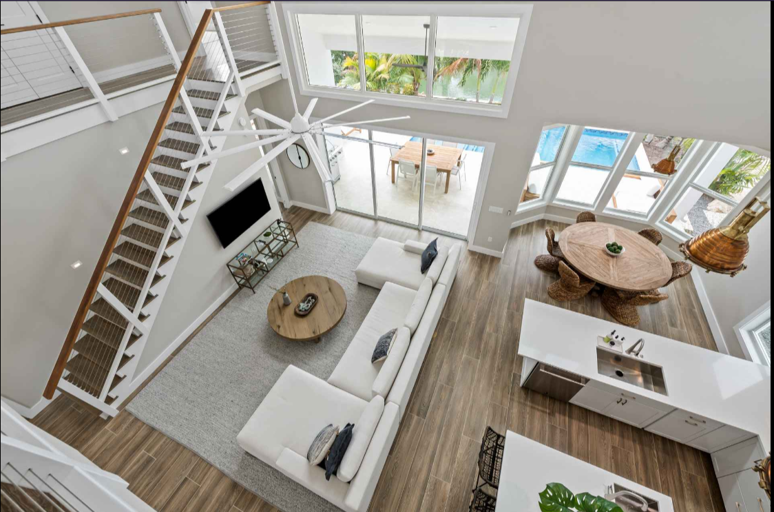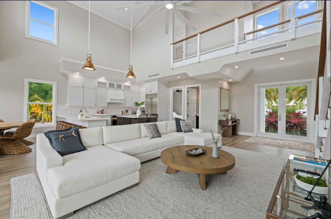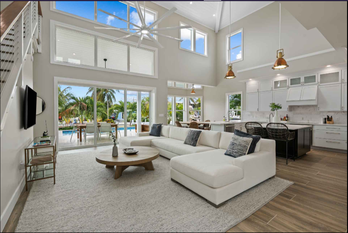 Islamorada, FL 33036 USA Swaying palms and a gracious front entry leave no doubt that relaxation awaits in this new construction Florida Keys home. The 5-bedroom, 3.5-bathroom home is along a canal in sought-after White Marlin Beach. The open-concept main floor has soaring ceilings, oversized windows and glass doors connecting the living space to the pool and waterway beyond. The bright gourmet kitchen features JennAir appliances, two sinks and spacious cabinets.